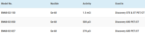 Ge-68 Normalization Pins for GE Discovery PET/CT Scanners.