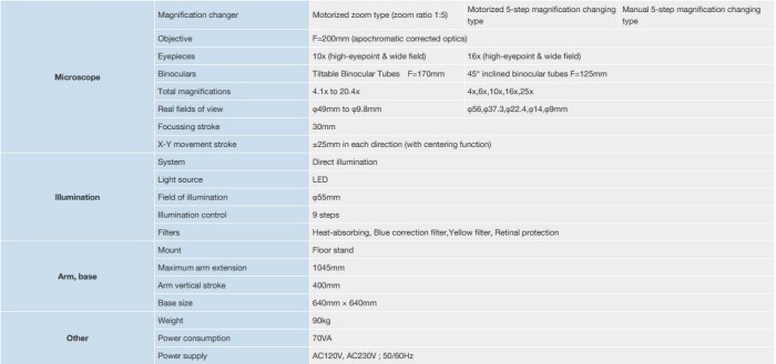 - By adopting a standard objective lens F=200 mm, the OM-9 is fully suited for vitreoretinal surgery. (compatible with a BIOM viewing system)