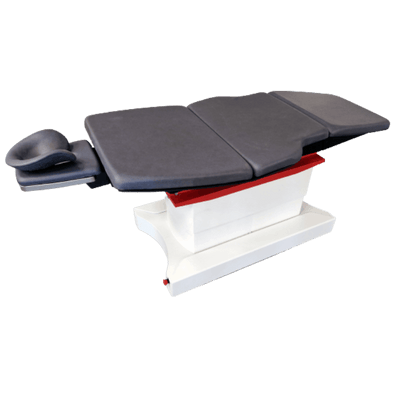 - Ergonomic patient surface with pressure relief and ±7° motorized headrest tilt