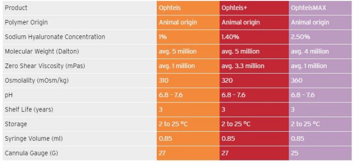 With Ophteis, Ophteis+ and OphteisMAX, Rayner offers a complete range of ophthalmic viscosurgical devices (OVD) made from hyaluronic acid of animal origin. The specific combination of different concentrations of HA and a high molecular weight has led to three distinct products with exemplary and complementary pseudoplastic qualities. The range manufactured in Sweden offers an optically clear OVD with no bubbles and can be stored at room temperature.