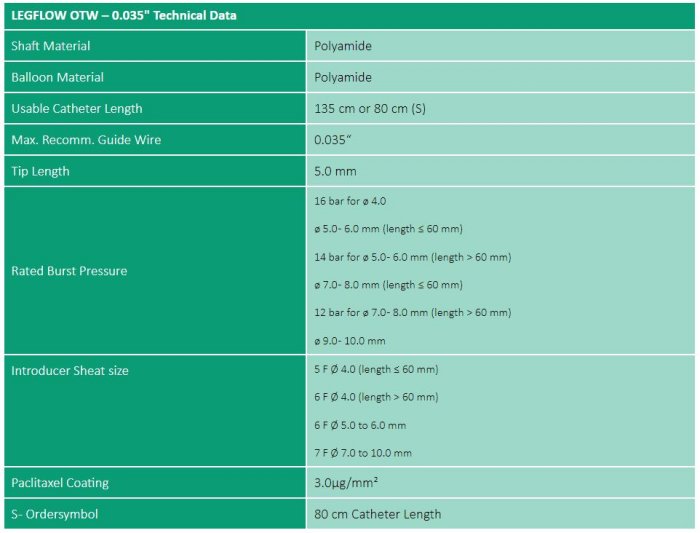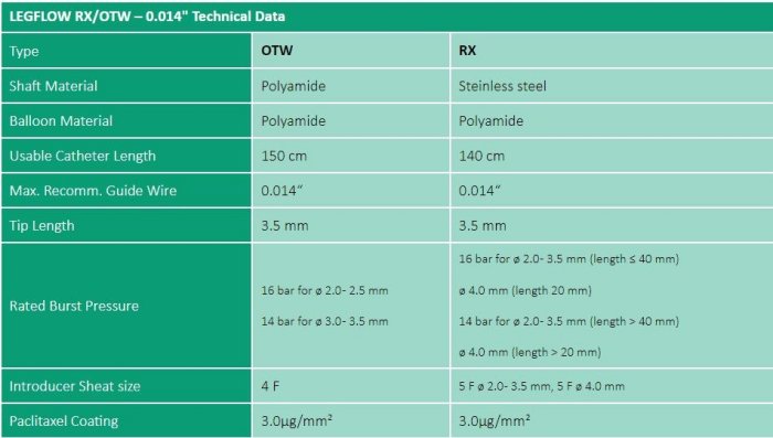 LEGFLOW RX/OTW provides a 100% anti-proliferative vessel wall protection, and promotes rapid healing after mechanical balloon angioplasty.