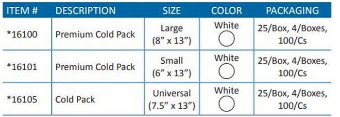 Precept’s Patented Ice Bags are available in three sizes, the Premium Cold Packs in large and small sizes, and universal sized Cold Pack. Precept Patented features include a wide mouth with opening aids that allow for extremely easy filling, a clip sleeve provides a secure holding area for the clip, and a bladder that is attached to the outer covering preventing it from slipping down in the bag which helps provide even cold therapy. Once the clip is closed it is secured and surrounded by the outer layers of the ice bag which provides a more comfortable application. Sturdy and strong ties allow for secure attachment. The three-layer design offers a soft outer layer for comfort, an absorbent middle layer, and an impervious inner plastic bladder