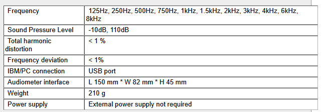PC based screening audiometer for the air conductive examination of hearing system. IEC 645-1 standard. Class Type 4 and Type 5. EN ISO 7029:2000 Statistical distribution of hearing threshold s as a function of age. Interpretation by PTA (Pure Tone Average). Interpretation by Grade of Hearing Impairment.