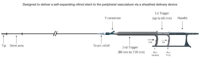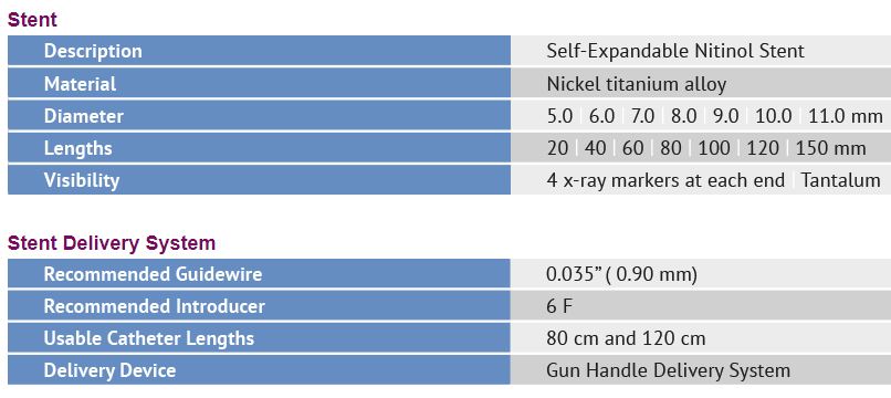 - Nitinol Stent with tantalum markers provides excellent visibility under fluoroscopy