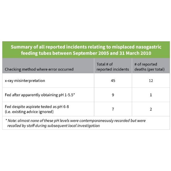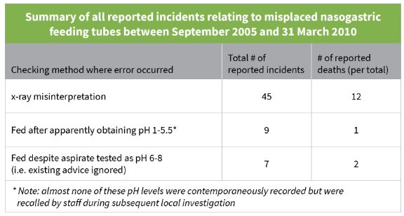 - US Nursing and Patient Safety Organizations have issued warnings to stop using auscultation and recommend the use of pH to confirm gastric placement**
