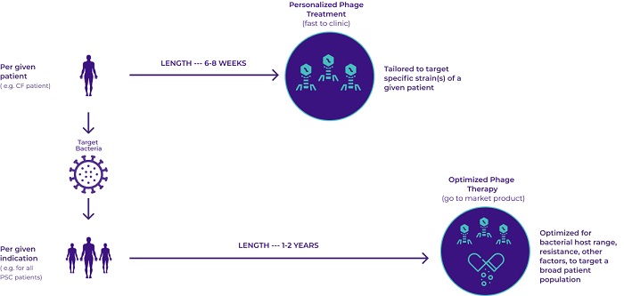 Tailored to target strains of a specific patient within 6-8 weeks. Running such production suites in parallel for multiple patients allows to conduct a clinical Personalized proof of concept within 12-18 months from project initiation.