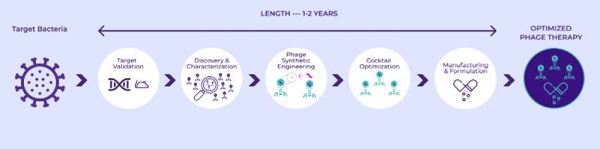 The BOLT platform (“BacteriOphage Lead to Treatment”) is comprised of proprietary computational tools, automated screening, synthetic engineering capabilities and various validation assays aimed at developing natural or engineered phage cocktails that target a particular pathogenic bacteria. We apply the platform to develop phage cocktails directed through two development paths as outlined below.