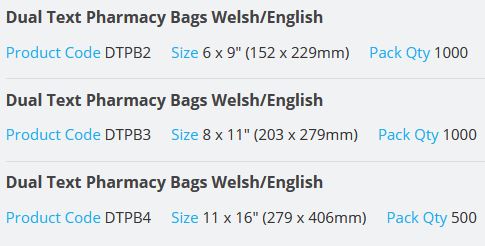 Henleys pharmacy bags can be produced to virtually any specification provided minimum quantities can be met. We currently offer dual text bags with English and Welsh text as well as English text only bags.