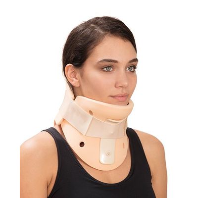 Functions and Features: Ensures cervical zone support and stabilization. Anatomically appropriate for thorax, mandibula and occiput. Stabilizes cervical spines in accordance with the anatomical position. Consists of two parts (front and back). Has plastic enhancers in front and back. Made of hypoallergenic plastozote material. Easy to wear and remove thanks to the velcros on the sides. Reduced perspiration thanks to the air holes.