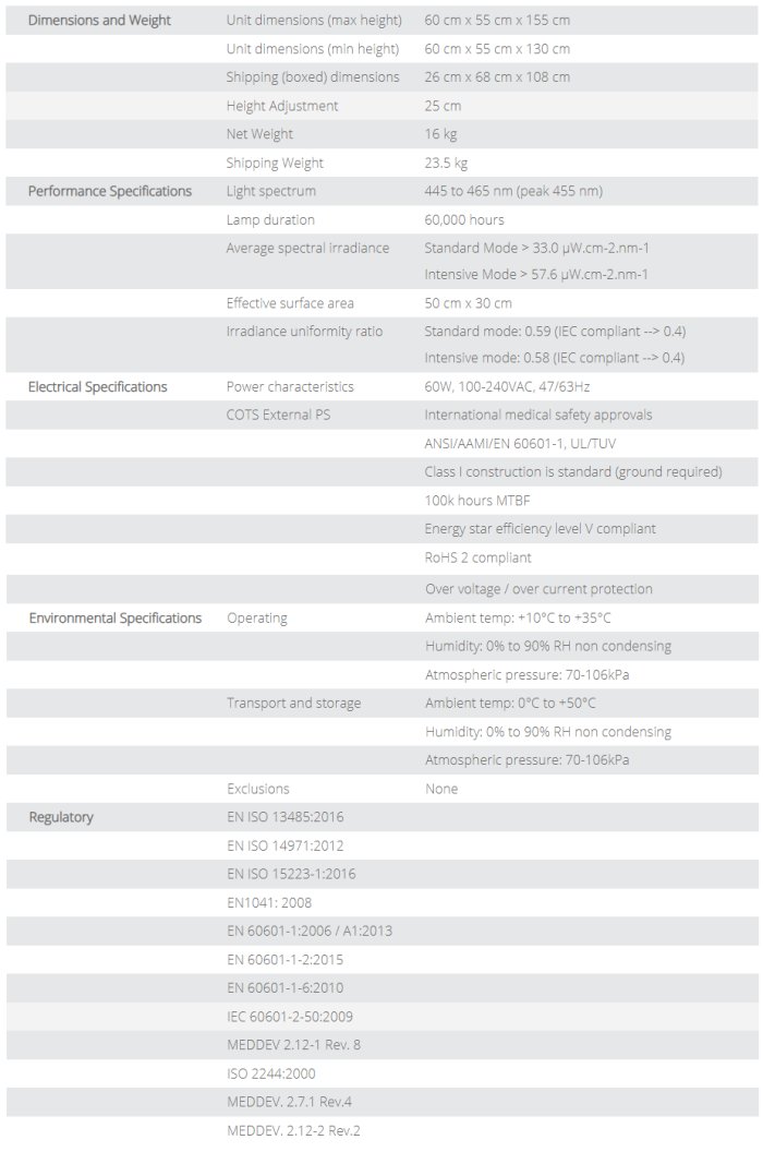 Colibri Phototherapy is high-power LEDs deliver blue light at 445-465 nm, the optimal light spectrum peak to treat jaundice. They are positioned to offer excellent light uniformity across a large area, enabling full patient skin coverage and effective dosage.