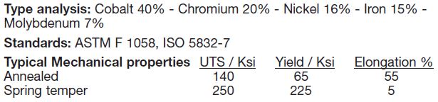 Outstanding combination of mechanical strength, corrosion and fatigue resistance; Material of choice when high stiffness or spring effects are sought.