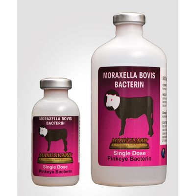 MAXI/GUARD® Pinkeye Bacterin – A safe, killed, and highly efficacious (over 90% effective) Moraxella bovis bacterin for the prevention and control of pinkeye (Infectious Bovine Keratoconjunctivitis) in healthy cattle. MAXI/GUARD Pinkeye Bacterin is very low in free endotoxin, easily syringable and free of injection site lesions. Dosage – 2 ml subcutaneously. Packaged in 50 dose and 10 dose bottles. MAXI/GUARD Pinkeye Bacterin is available in the United States and Canada.