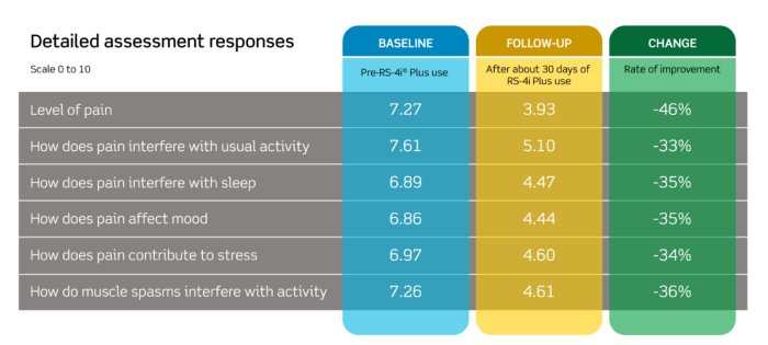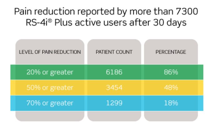 RS-4i Plus treatments begin with a few minutes of Interferential therapy, in which the RS-4i Plus blocks the transmission of pain signals to the brain with a high-frequency waveform that penetrates deep into tissue. Pain Relief treatment segments can help relieve acute musculoskeletal pain or relieve and manage chronic musculoskeletal pain.