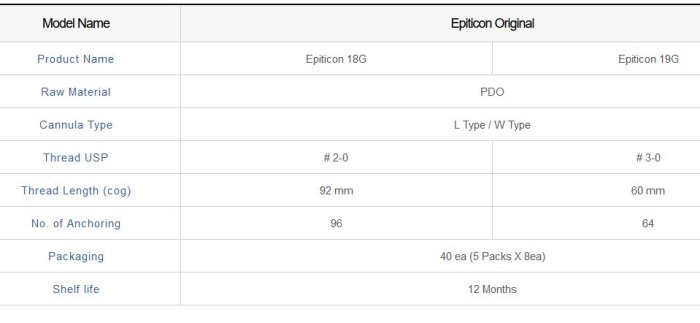 Product Name : Polydioxanone suture; Model Name : epiticon; Product Authorization Number : 15-1636; Purpose of use : It is contouring lifting thread, general-purpose catheter cannula, and sterilized needle. It is used for the purpose of medical treatment for the purpose of not administering drugs and the like.; [Single use / Sterile medical devices / Do not reuse].