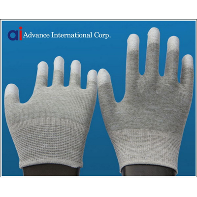 Liner: polyester or nylon and copper fiber mixed. Coating: PU fingertip. Size: 7/S, 8/M, 9/L, 10/XL, 11/XXL. Feature: superior electro-conductivity excellent finger sensitivity and dexterity, flexible.