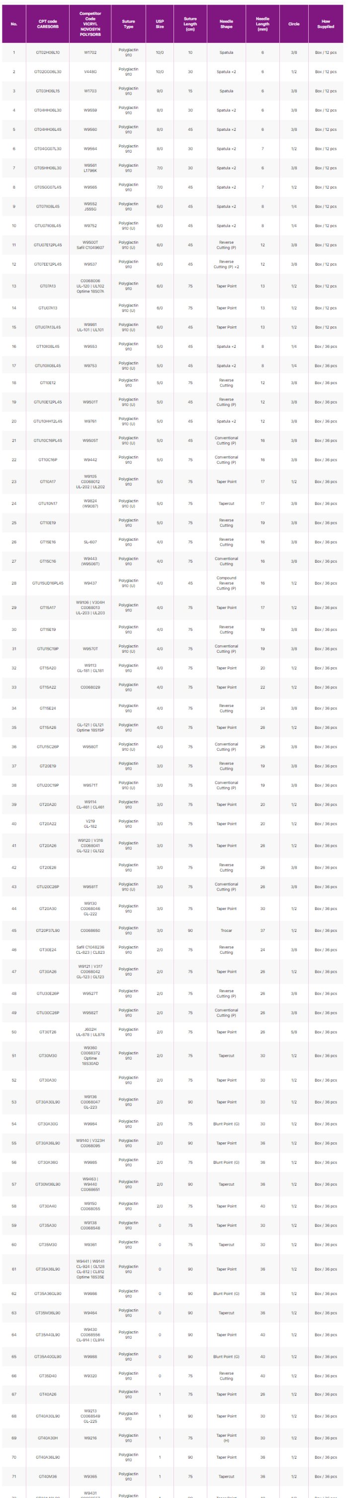 CARESORB® – Polyglactin 910 Surgical Sutures are indicated for use in general soft tissue approximation and/or ligation, including use in ophthalmic procedures; but not for use in cardiovascular or neurological tissues.