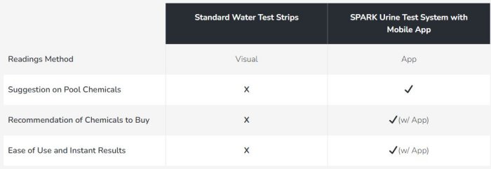 No visual color chart reading required with associated app. Easy-to-use smartphone test system app, Spark Water available in iOS and Android