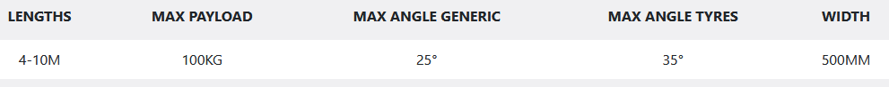 The UL-500 reduces the risk of injury caused by manual handling, all while increasing efficiency. Its sturdy frame can take a payload of 100kg without a problem, at a recommended safe working angle of up to 35 degrees for tyres and 25 degrees for boxes.