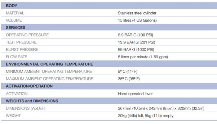 Portable, stainless steel emergency eye, face and body shower. This portable eye wash offers an effective solution in locations that are unsuitable for fixed installations and should be used as a secondary safety measure to supplement plumbed in eye/face wash units. The 15 litre stainless steel cylinder with Optiflex hand shower effectively washes eyes, face and body.