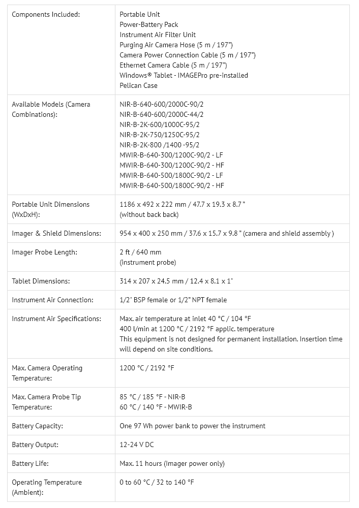 The portable thermal imaging system is ideal for taking quick in furnace measurements and undertaking surveys, across multiple port holes