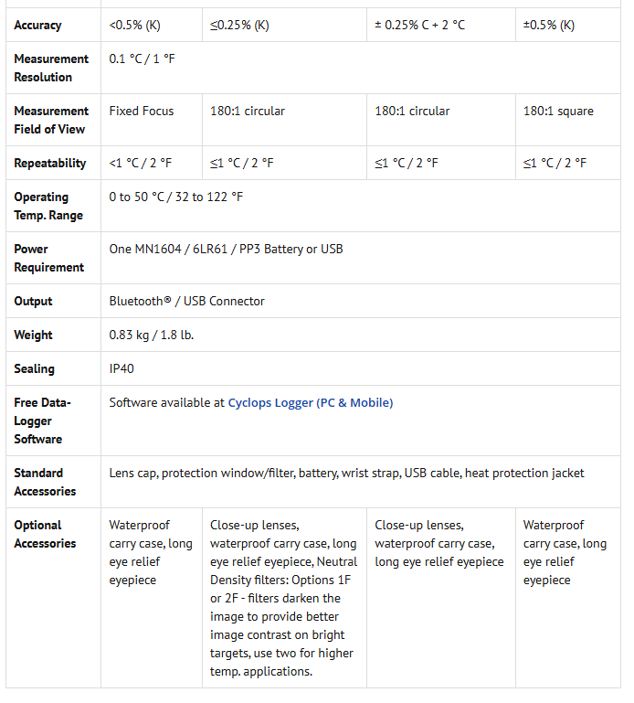 Cyclops L Portable Pyrometers are a range of premium quality, highly accurate hand-held instruments that provide accurate temperature readings.