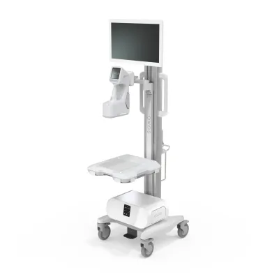 MC2 Clinic maneuvers seamlessly, reaching various heights and angles for optimal imaging. It’s an all-in-one solution with a cart, monitor, and wireless charger for efficiency.