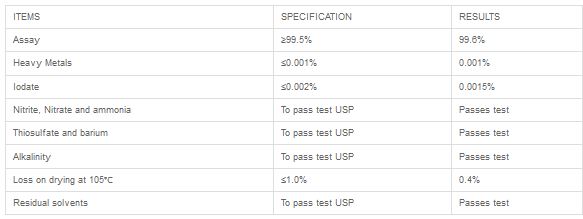 Used as a feed additive. As a component of thyroxine, iodine participates in the metabolism of all substances in livestock and maintains the heat balance in the body. Iodine is an essential hormone for the growth, reproduction and lactation of livestock and poultry. It can improve the growth performance of livestock and poultry and promote the health of the body. If the body of the livestock is deficient in iodine, it will lead to metabolic disorders, disorders of the body, thyroid enlargement, affecting nerve function and the coloration of the coat and the digestion and absorption of the feed, eventually leading to slow growth. The food industry is used as a nutritional supplement (iodine enhancer).