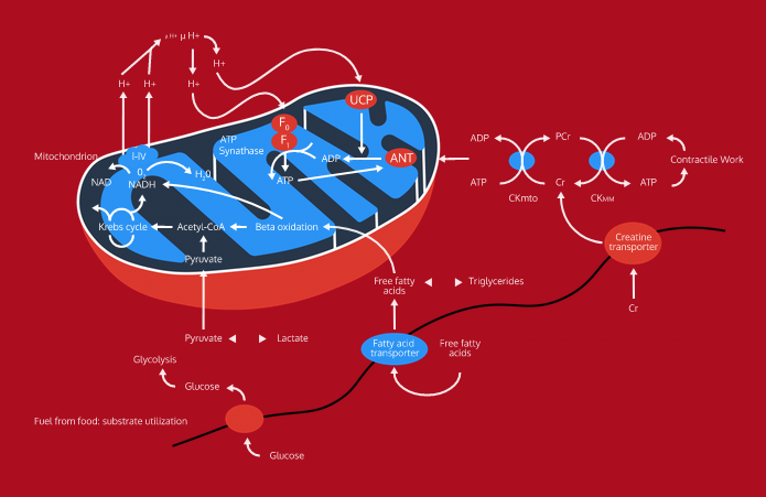 Dysfunctional mitochondria produce less cellular energy (ATP) and produce increased unhealthy levels of reactive oxygen species (ROS), both of which lead to oxidative stress and ultimately to Heart Failure.