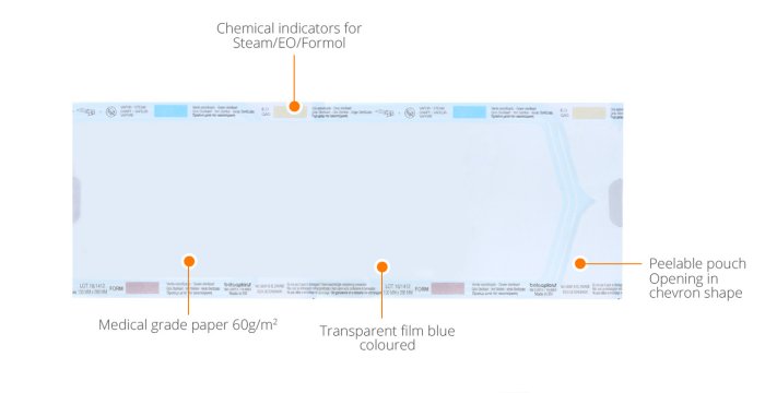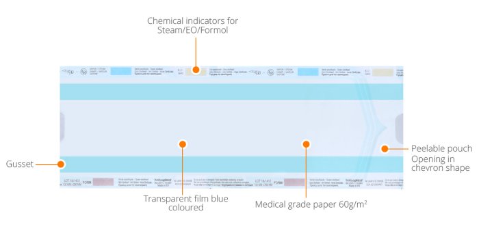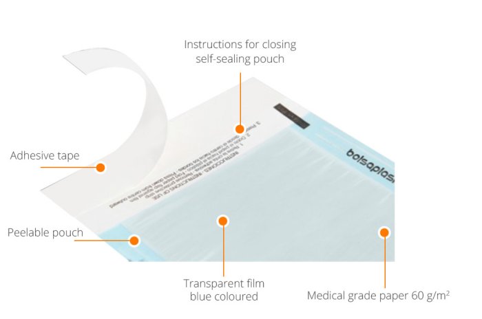 Bolsaplast offers a wide range of pouches and rolls for sterilisation using Steam, EO and Formaldehyde. The products are made of medical grade paper and blue-tinted transparent plastic film. We have a wide variety of measurements and formats in stock. Ask us about special measurements.