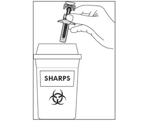 Dispose of the used syringe in a sharps container (closable, puncture-resistant container). For the safety and health of you and others, needles and used syringesmust neverbe re-used.