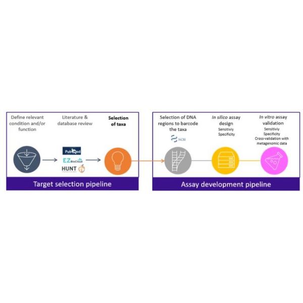 Gut bacterial and fungal (sub)species to be targeted by PMP™ are chosen after extensive database and literature research, according to the area of interest. Once the targets have been selected, we follow an in-house bioinformatics pipeline to design and validate specific qPCR assays targeting the desired bacterial or fungal taxa.