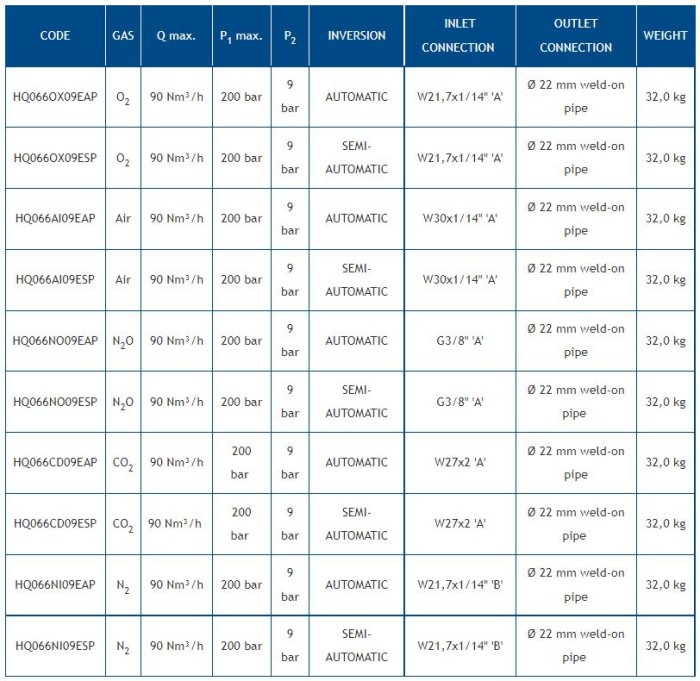 Medium/high flow rate control panel for medicinal gases, available both with automatic change-over and manual reset and fully automatic; both versions are available with pressure switch; consisting of two double reduction lines, it guarantees continuous supply with high pressure stability; complete with manifolf exaust valve; the outlet connector is for a Ø 22 mm welded pipe; its maximum flow rate with nitrogen at 9 bar outlet pressure is 90 Nm³/h, 1500Nl/min; the panel is completed by a steel plate and a white polycarbonate cover that is light and practical to install.
