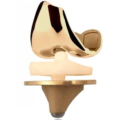 - Tibial component in Titanium Aluminium Vanadium alloy ISO5832/3 or CoCr alloy ISO5832/4.
