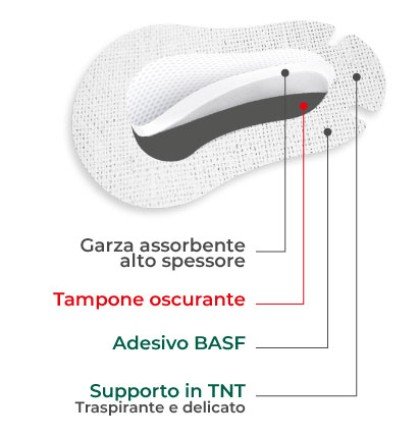 Printed eyes occlusor pads: With high thickness gauze, Anatomical, Delicate, Dermatologically tested, Hypoallergenic, AVAILABLE SIZES: JUNIOR (0-3 years) 50 x 67 mm, MEDIUM (3-5 years) 57 x 80 mm, REGULAR (5-7 years) 59 x 85 mm