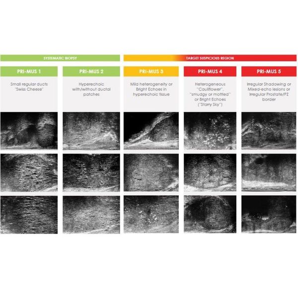 PRI-MUS™ (prostate risk identification using micro-ultrasound) is an evidence-based* protocol for identifying sonographic features of the prostate under micro-ultrasound to help direct and target biopsies.
