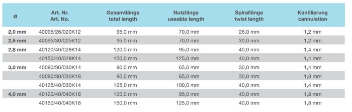 risa twisted drills are available with diameters from 1.0 to 10.0 mm. We offer all popular coupling options. Our drills are manufactured on fully automated grinding machines and come with perfect concentricity. The cutting angles are optimized for a work with minimum effort. Our product range includes cannulated drills as well as drills with flexible shank. Please contact us for your personal offer of drills according to your drawing or sketch.