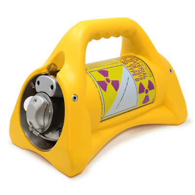 SENTINEL Model 880 Delta, 880 Elite, and 880 Omega source projectors are portable, lightweight, and compact industrial radiographic exposure devices. The patented device body consists of a titanium āSā tube and cast depleted uranium (DU) shield contained within a 300 series stainless steel tube with stainless steel discs welded at each end forming a cylinder-shaped housing. The discs are recessed to provide protection for the rear-mounted locking mechanism and front-mounted outlet port.