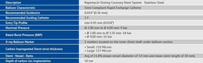 The MAGMA Rapamycin-Eluting Coronary Stent System is the first carbonized stent (Inert Carbon Technology) with a completely biodegradable polymer coating which contains Rapamycin (Rapasorb™) as a highly effective drug for preventing thrombotic and re-stenotic events.