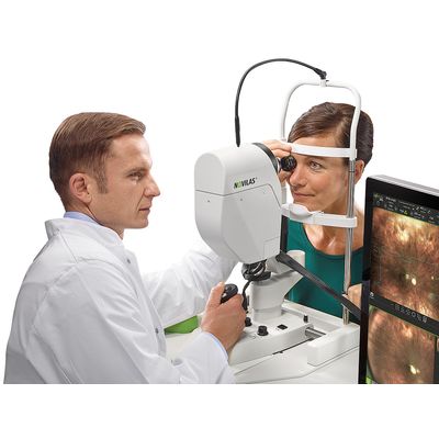 Navilas simplifies and accelerates peripheral laser coagulation with flexible and automated pattern positioning via touchscreen and joystick.
