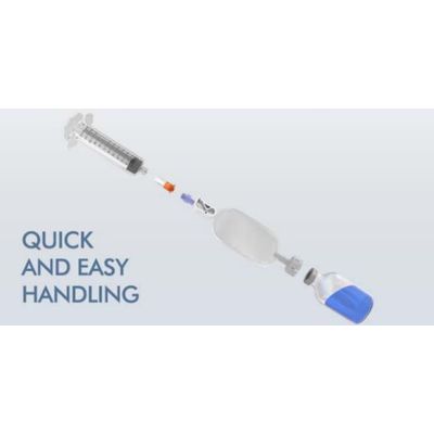 - EASY-TO-USE. The linear pre-assembled closed-circuit system significantly reduces the time for reconstitution and administration, while the proprietary know-how and hermetic connections save medical workers from extra steps and device manipulations.