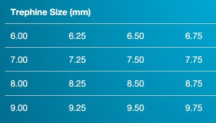 - Trephine Blade and Cross Hair: Stainless Steel (Blade Depth 1.15mm)