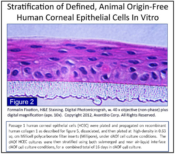 AvantBio introduces an improved and efficient, 2-component, defined animal origin-free cell culture supplement system for primary and post-primary human corneal epithelial cells that is suitable for the reconstruction of human corneal epithelium under defined animal origin-free cell culture conditions.