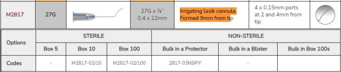 For irrigating either the anterior or posterior sides of the flap and the stroma in laser refractive procedures.
