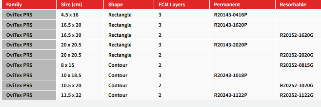 Our comprehensive portfolio of solutions offers four configurations of OviTex specifically designed for hernia repair and abdominal wall reconstruction and one for plastic and reconstructive surgery.