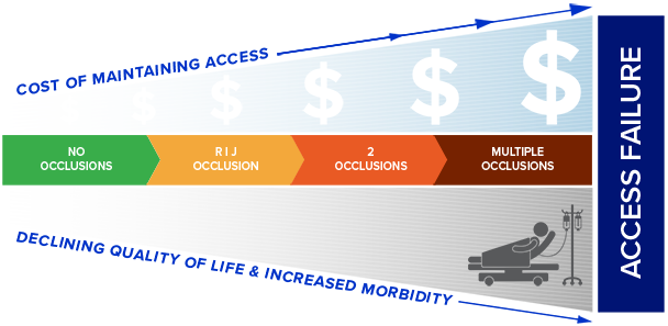 Achieves reliable and repeatable central venous access to the right internal jugular (RIJ) vein. Preserves the viability of secondary central veins. Optimizes the ability to place and mature permanent arteriovenous (AV) access.