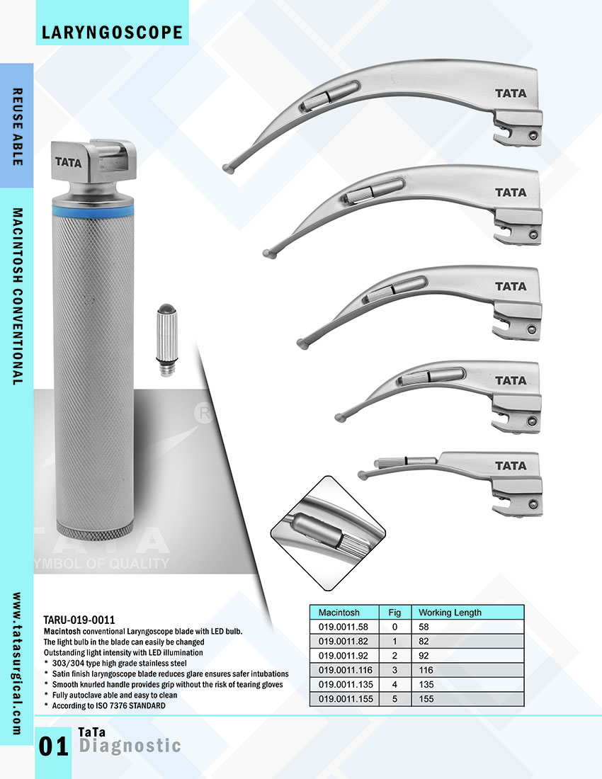 Tata - Model TARU-019-0011 -Reuseable Macintosh Conventional Laryngoscope