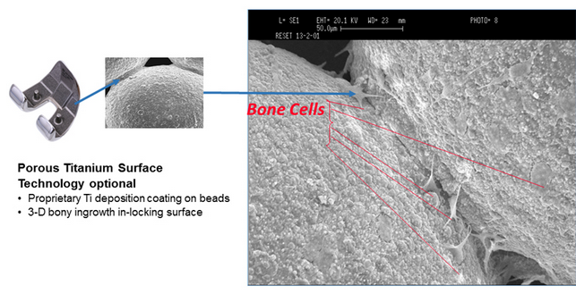 Consensus Orthopedics Titanium Surface Technology is available on key regions of Consensus Knee components to provide an enhanced mechanical interface. The Porous Titanium Bead structure is coated with a plasma deposition process that further enhances adhesion to the porous area.