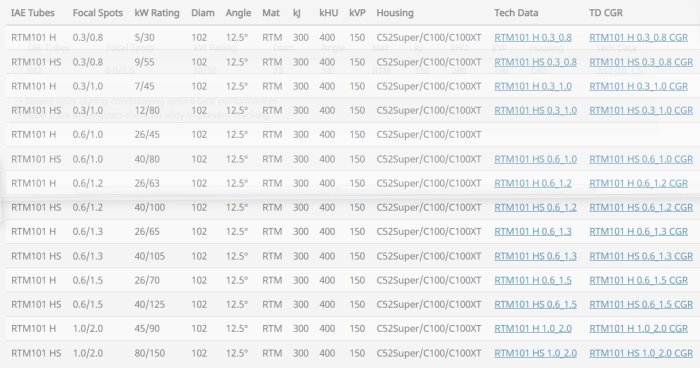 | Anode angle and diameter | 12.5°- 102 mm | |