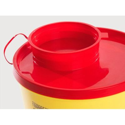 The PBS line includes round shape disposable and puncture resistant containers for the disposal of sharp and cutting waste and it comes in sever sizes. The conical shape and the indent on the lid ease the disposal and the remove of needles, whilst the anti-defluxion flow wings on the lid prevent the outflow of the waste. All the models have temporary and definite closure and are fitted with solid handle; the three most volumious models are fitted with an ergonomic handle that eases use.