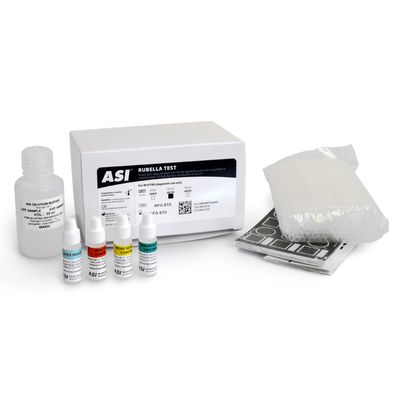 The ASI Rubella test (also known as German Measles) is a convenient and specific rapid latex particle agglutination test for the Qualitative and Semiquantitative determination of rubella virus antibodies in serum. The kit can be used to test diluted or undiluted samples. The test aids in the diagnosis of recent or active rubella infection and in the determination of immune status.